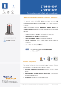 The 275/P10 600A automatic bollard is significantly more resistant than the P series, thanks to its special thick stainless-steel cylinder (10 mm) and its reinforced structure with high resistance to impacts and pulling forces. It is the ideal solution for properly managing entrances in private or industrial areas, reducing the risk of theft and unauthorized intrusion. The impact resistance verified by TÜV makes the product particularly reliable, while the reduced excavation depth ensures easier installation. Also available with removable pump and different inclination options.