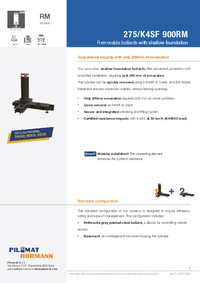 Certified PAS68, IWA14, ASTM level M30 at 50 km/h, the 275/K4SF 900RM shallow-foundation removable bollard offers both a compact height and a reduced excavation depth (200 mm); a combination that makes it ideal for sensitive areas requiring maximum protection with minimal footprint.